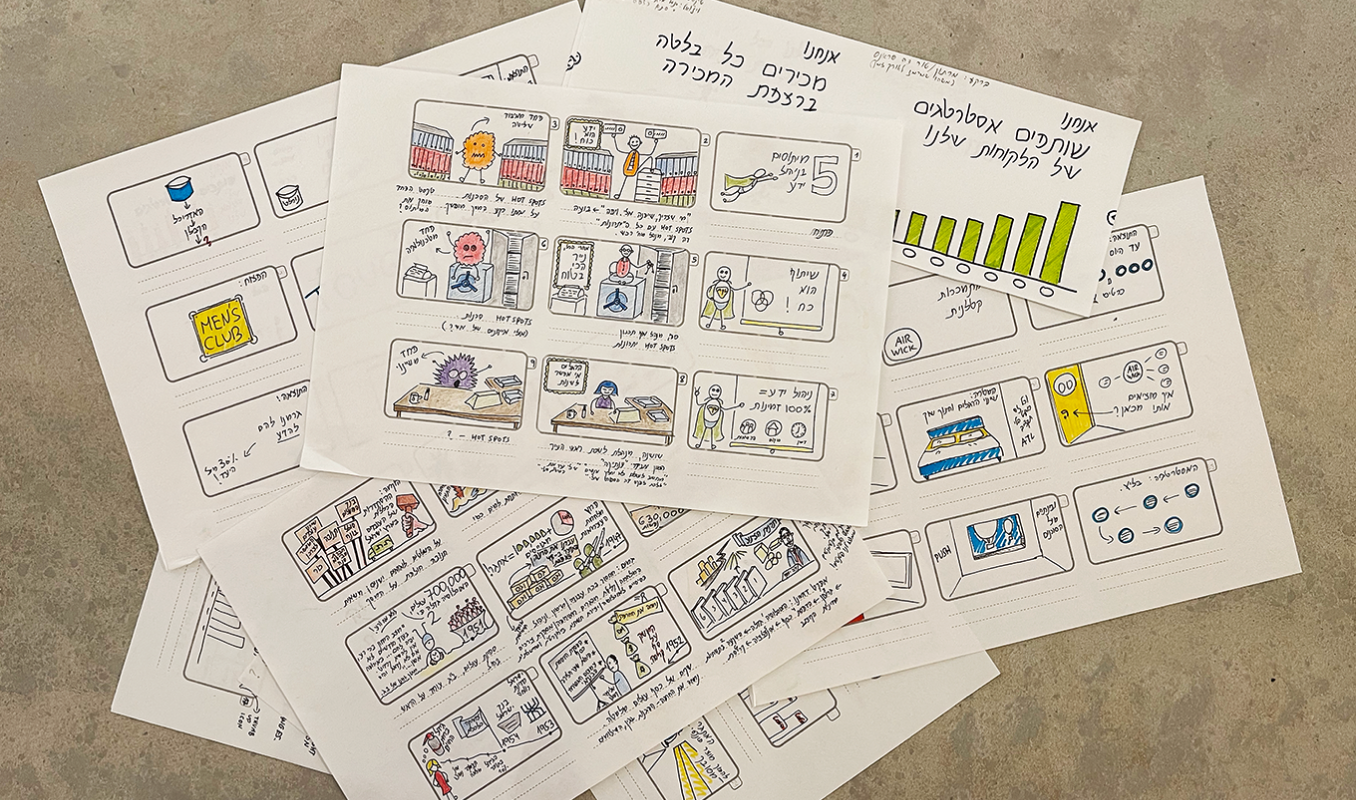 לפני כמה ימים הגר פתחה מגירה עלומה במשרד, ומצאה את מחברת הסקיצות המאובקת של סטוריטלרז, מהתקופה שבה כל מצגת התחילה מאיורים ידניים, ותהתה מה זה הדבר הזה. ובכן, מכאן הכל התחיל, ולפעמים התמימות הזאת קצת נשכחת.